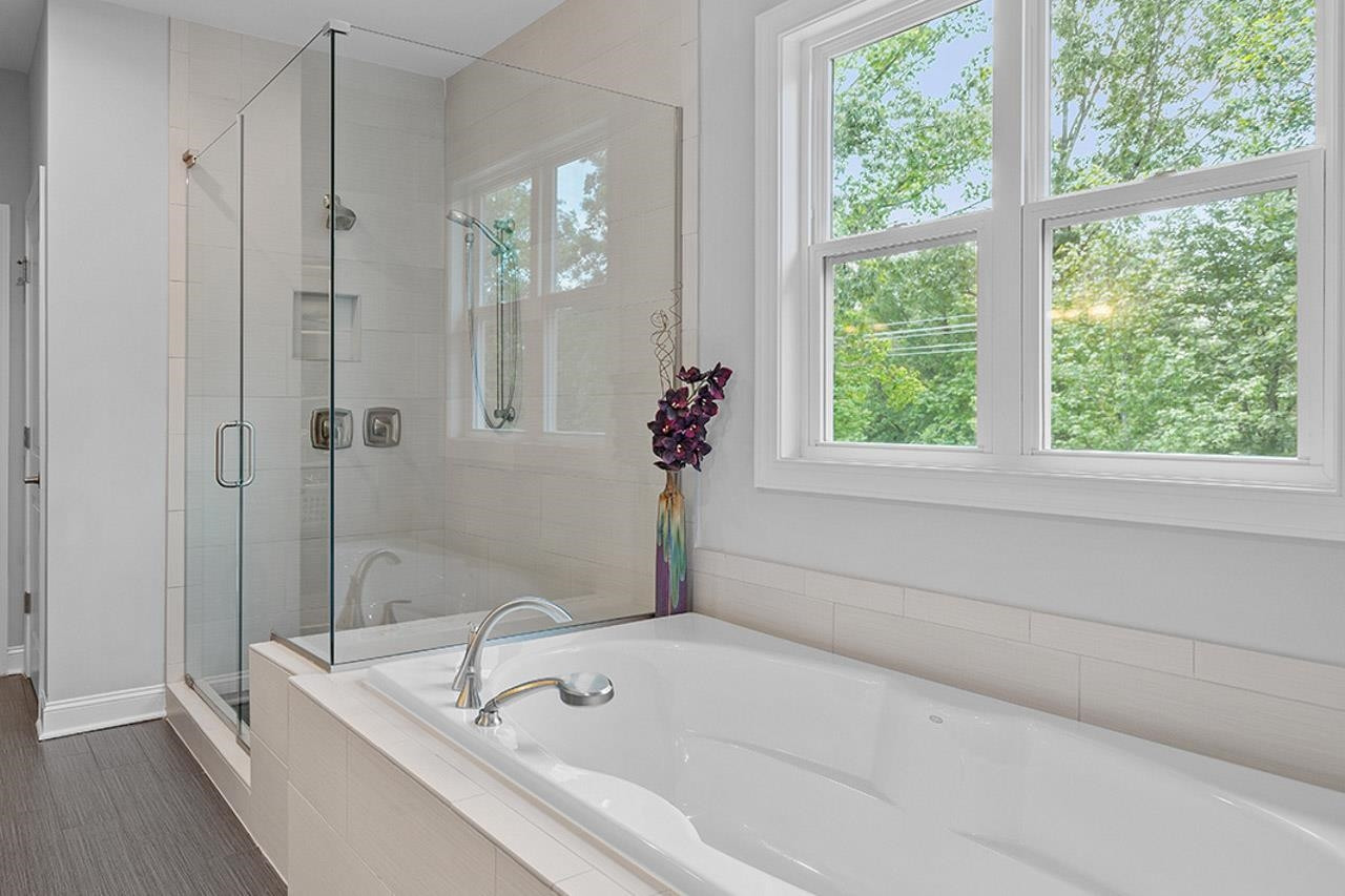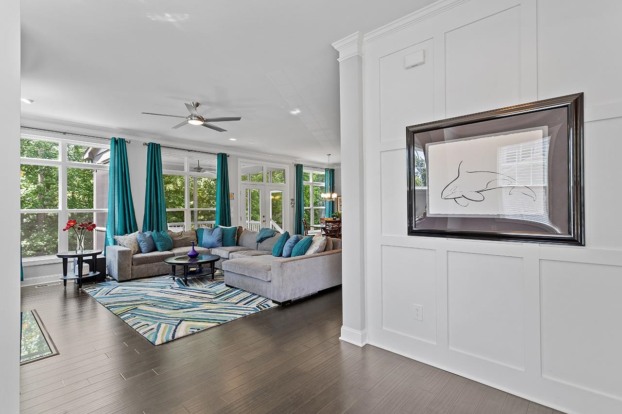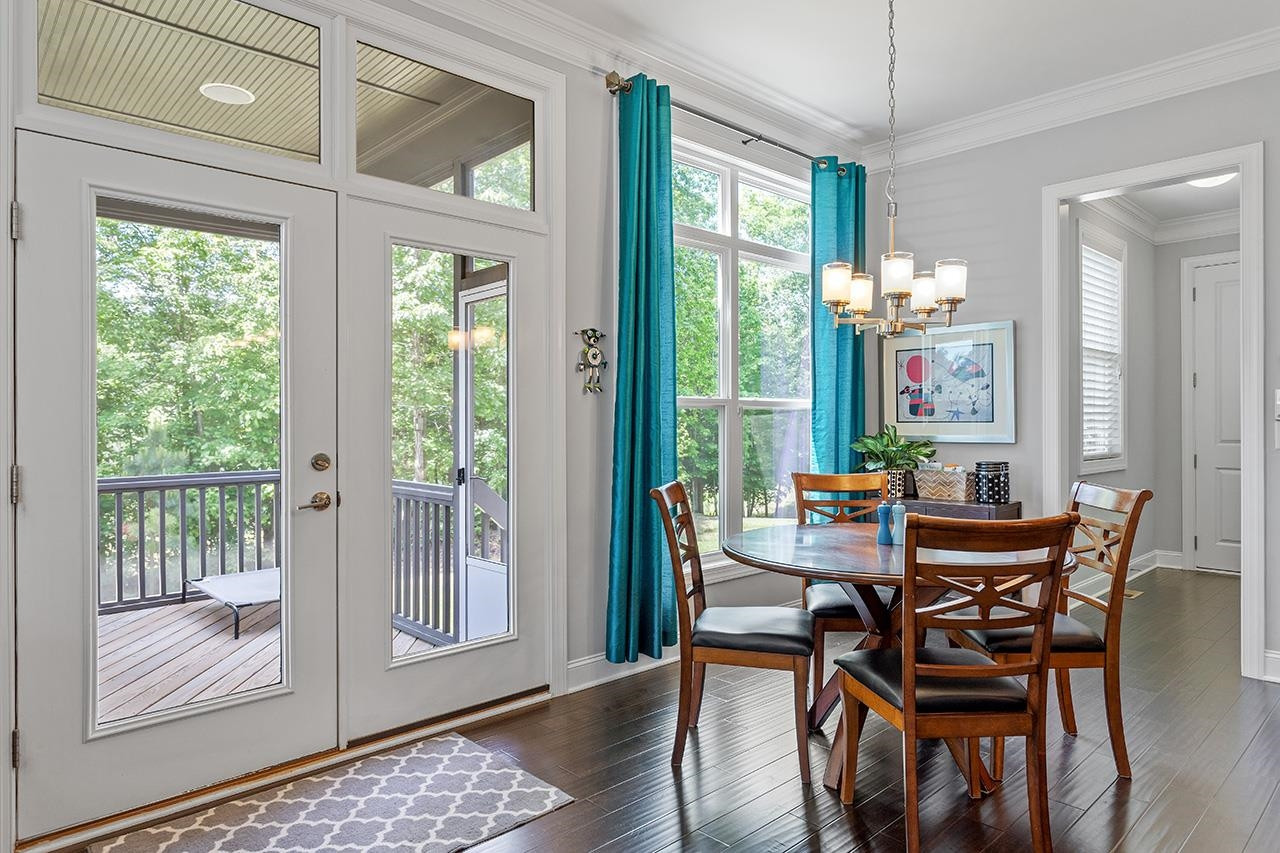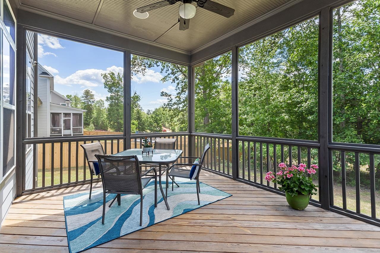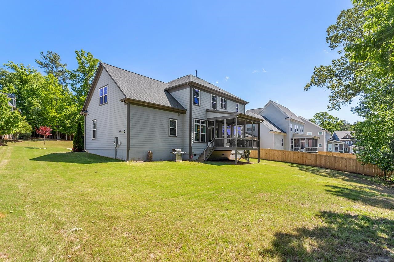 Beautifully landscaped, meticulously maintained home in sought-after WOODCREEK neighborhood. OPEN floor plan boasts 10 ft ceilings & tons of large windows for abundance of NATURAL light. GOURMET kitchen includes custom painted large island, double wall ovens with separate under cabinet microwave, gas stove, gorgeous countertops and tile backsplash, transom cabinets over uppers for extra storage and beautiful custom finish. Butler's pantry with wine fridge is perfect for entertaining! Main level also features separate dining room and a bedroom with full bath . LOFT space & BONUS room upstairs. Fabulous master suite with tray ceiling and large bath featuring his/hers separate vanities and large frameless walk-in shower. Gorgeous SCREENED PORCH overlooks large, flat backyard with wooded view. HOA includes resort style pool, playground, Clubhouse and tennis court access. WELCOME HOME!