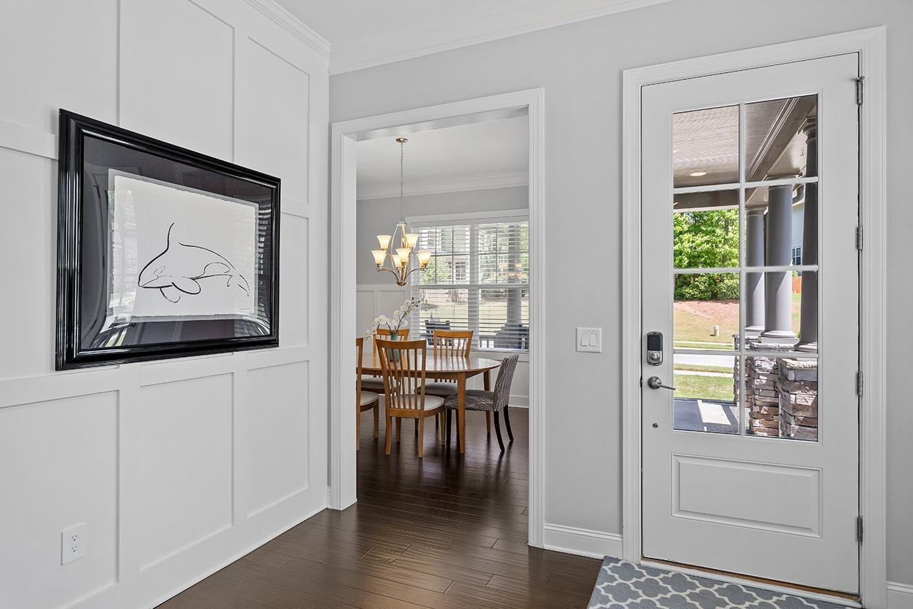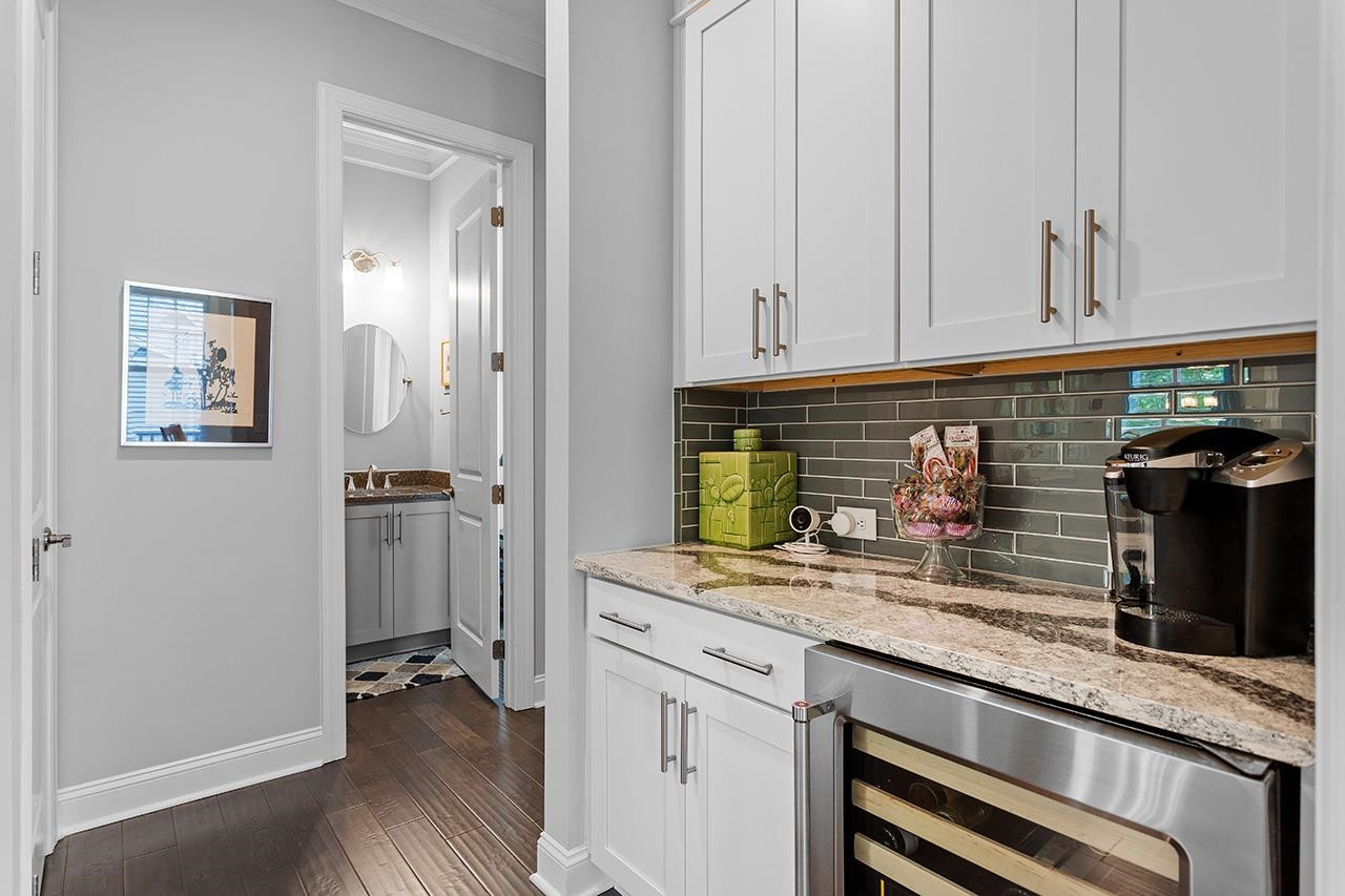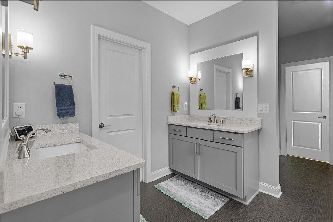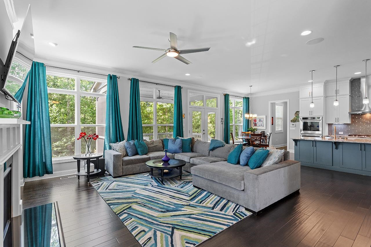 Beautifully landscaped, meticulously maintained home in sought-after WOODCREEK neighborhood. OPEN floor plan boasts 10 ft ceilings & tons of large windows for abundance of NATURAL light. GOURMET kitchen includes custom painted large island, double wall ovens with separate under cabinet microwave, gas stove, gorgeous countertops and tile backsplash, transom cabinets over uppers for extra storage and beautiful custom finish. Butler's pantry with wine fridge is perfect for entertaining! Main level also features separate dining room and a bedroom with full bath . LOFT space & BONUS room upstairs. Fabulous master suite with tray ceiling and large bath featuring his/hers separate vanities and large frameless walk-in shower. Gorgeous SCREENED PORCH overlooks large, flat backyard with wooded view. HOA includes resort style pool, playground, Clubhouse and tennis court access. WELCOME HOME!