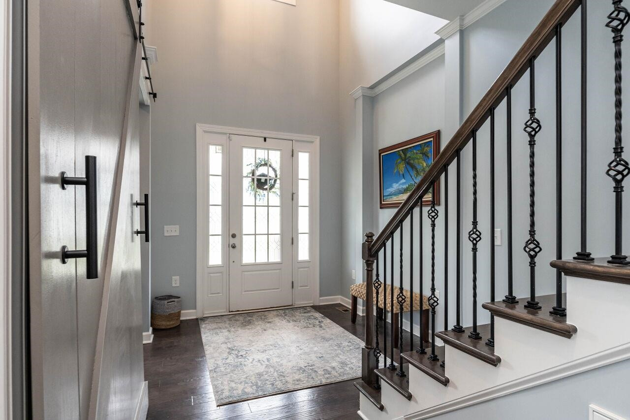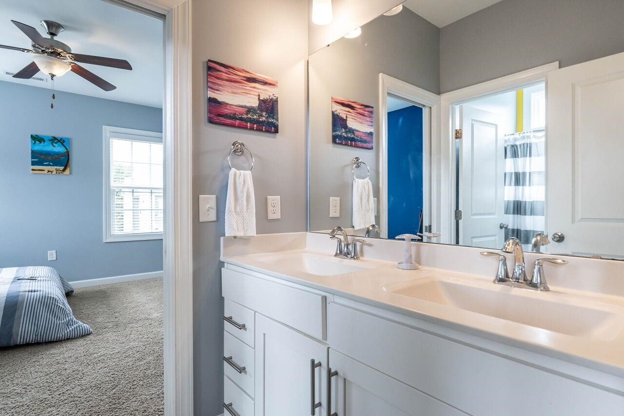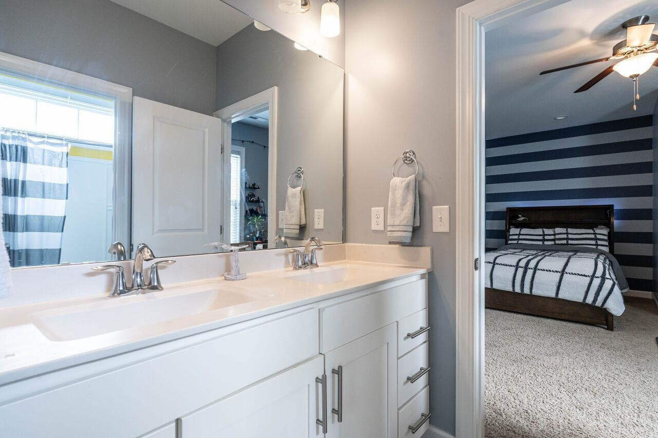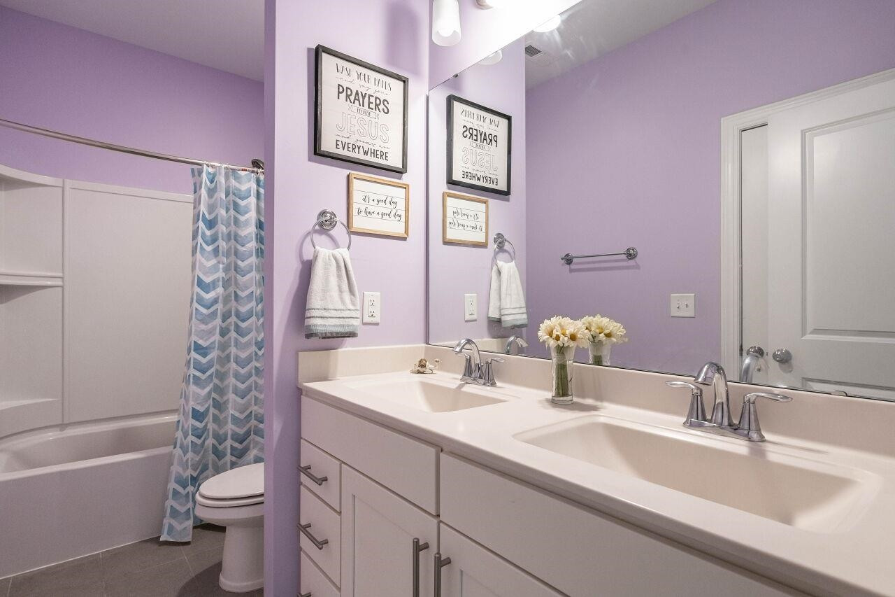 Luxury 4 bed, 4 full bath home in popular Woodcreek neighborhood with complete access to community amenities. The first floor features an office with stylish barn door, dining room/flex space, gourmet kitchen with expansive island and custom pull-out drawers opening to breakfast area and family room with stone fireplace and surround sound. On the second level you find all bedrooms with direct access to a bath, centrally located loft with surround sound, and the laundry room complete with drying racks. The expansive owners suit features a trey ceiling, yours & mine walk-in closets, dual vanities, water closet, and a luxurious walk-in shower. The two-car garage is complete with an EV charger. The walk-up attic will meet all your storage needs. Other included features: custom blinds, an abundance of storage/closets, hardwood floors, high ceilings, rocking chair front porch and screened porch. Community amenities include pool/waterpark, basketball, tennis court, playground, fitness room, clubhouse, lanai and paved trails to walk the neighborhood.
