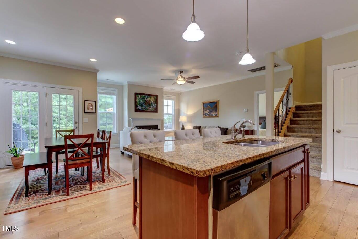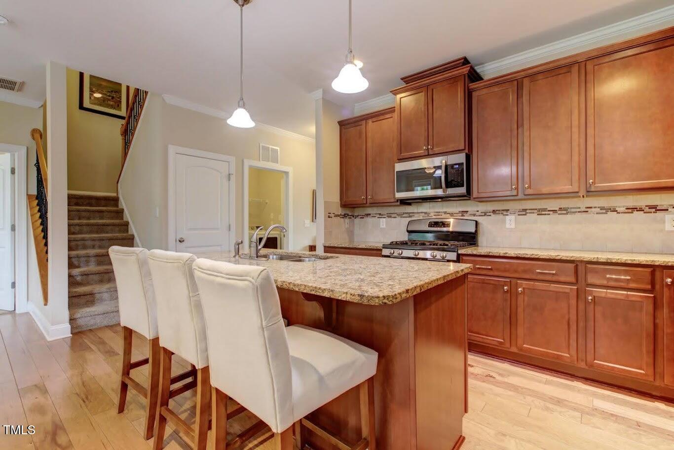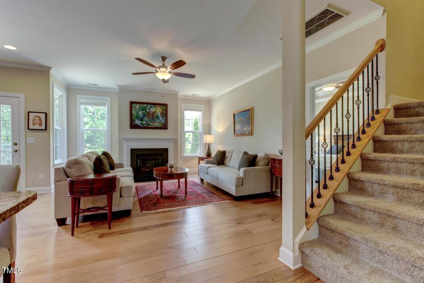 Welcome to your serene retreat in Cary Park! This stylish end-unit townhome offers modern elegance, stunning pond views, and a stone patio perfect for relaxing outdoors. Enjoy gleaming hardwood floors, a gourmet kitchen, and a bright open-concept family room with a cozy fireplace. The main-floor master suite is a private oasis, featuring a tray ceiling and a spa-like tiled walk-in shower. Upstairs, a versatile loft area is perfect for a home office or lounge space, while two spacious bedrooms provide plenty of room. Located in the sought-after Cary Park community, you'll have access to scenic walking trails, a playground, and the option to join the community pool. Don't miss this incredible opportunity?schedule your tour today!