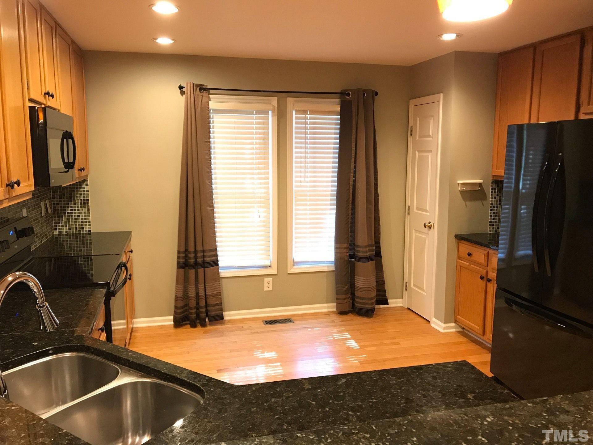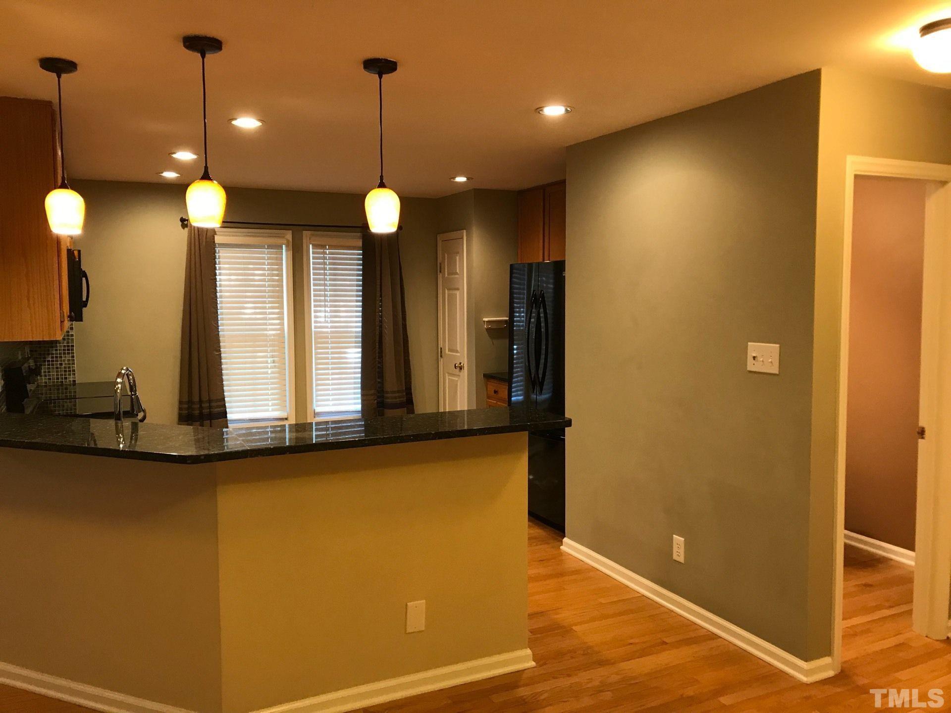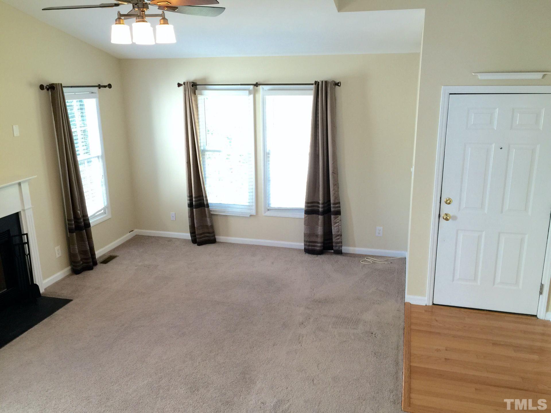 Great location! Beautiful 3 Bedroom 1 Car Garage House w/a Fenced in Backyard @ Park Village, Cary, Available July 7th! Features wood-look flooring on the front foyer, kitchen, powder room, and dining area! Carpeted family room w/vaulted ceiling, ceiling fan/light fixture, coat closet, and a wood burn fireplace with built-in shelf overlooking a fully equipped kitchen w/ black and SS appliances, black granite countertop, tile backsplash, & pendant lights above breakfast bar! Dining area lead to a back door with access to a spacious deck and a fenced-in backyard! 2nd Floor include 2-2nd bedrooms, a hallway bathroom with a single vanity & a tub/shower combo. A primary suite include a ceiling fan, WIC, dual sinks, and a shower/tub combo! Pooled community with a children playground, greenways! Minutes to shopping, dining, Hwy 55, US 1, I-40, RTP, RDU, & more! *Pictures were taken prior to current residents*