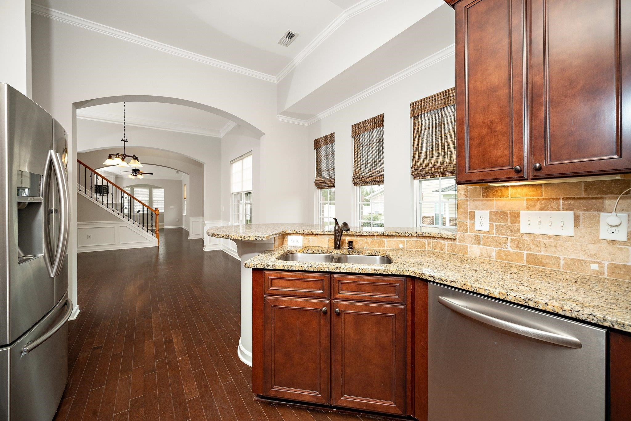 Well Kept gorgeous freshly painted end unit townhouse in desirable Village Square at Amberly on one of the biggest lots in the community! Walk around through your own private side entrance and enter into a breathtaking 2 story Foyer! First floor features Owners' suite, huge dining area, along with family room w/gas fireplace. One of the few units with a SUNROOM for your enjoyment all year long. Walk up the beautiful wood stairs encapsulated with iron balusters to the two spacious bedrooms, and the loft area for additional flex space. Spacious 2 car garage w/rear entry. Amberly is known for the resort-like amenities including walkable neighborhood dog park, pools, fitness center, and more!