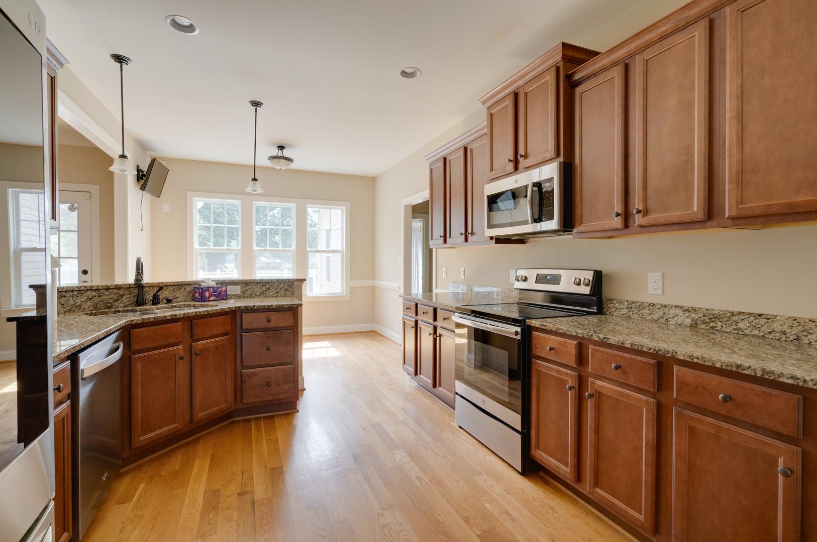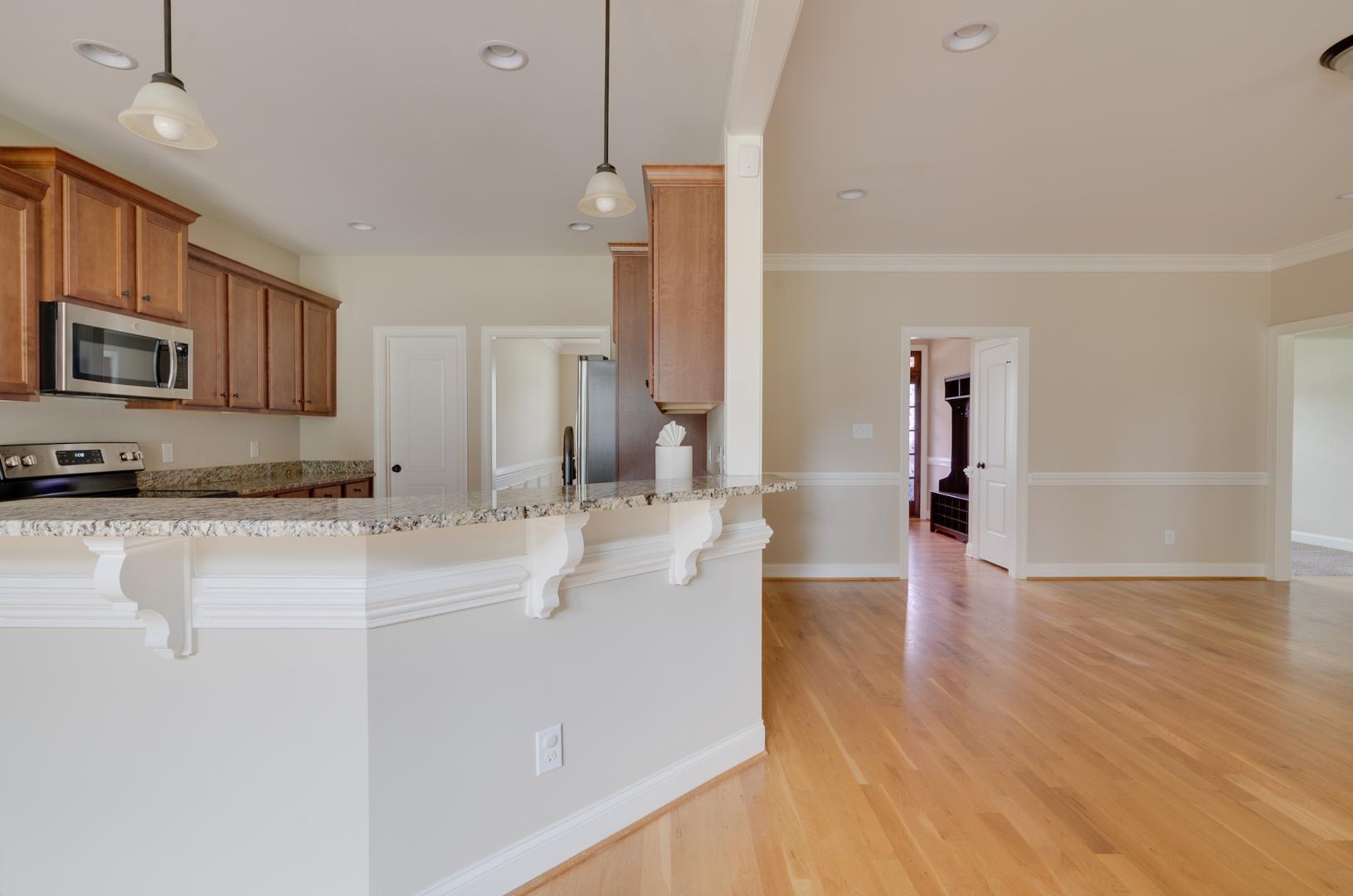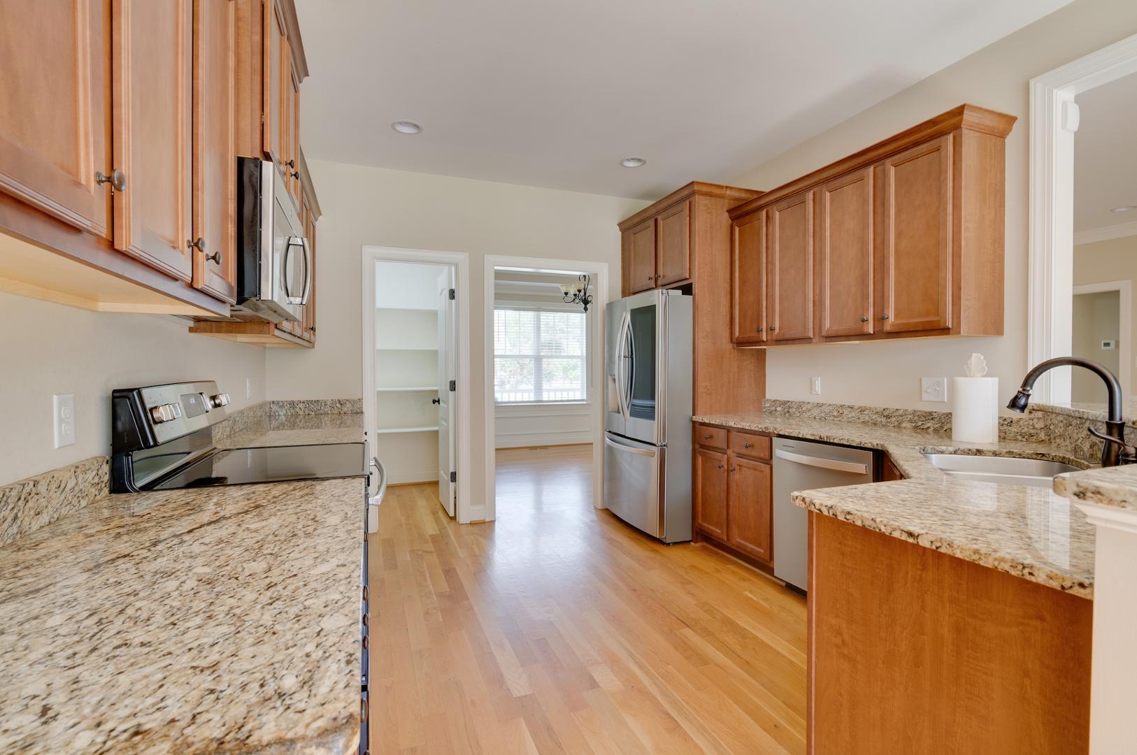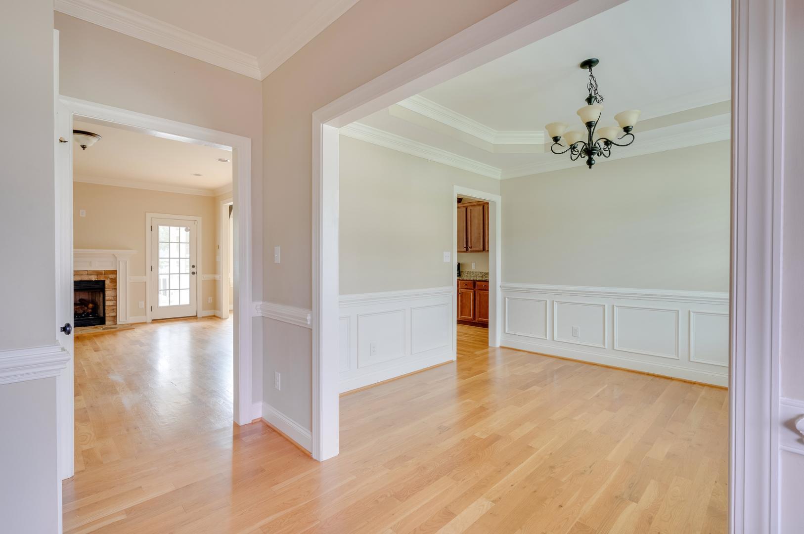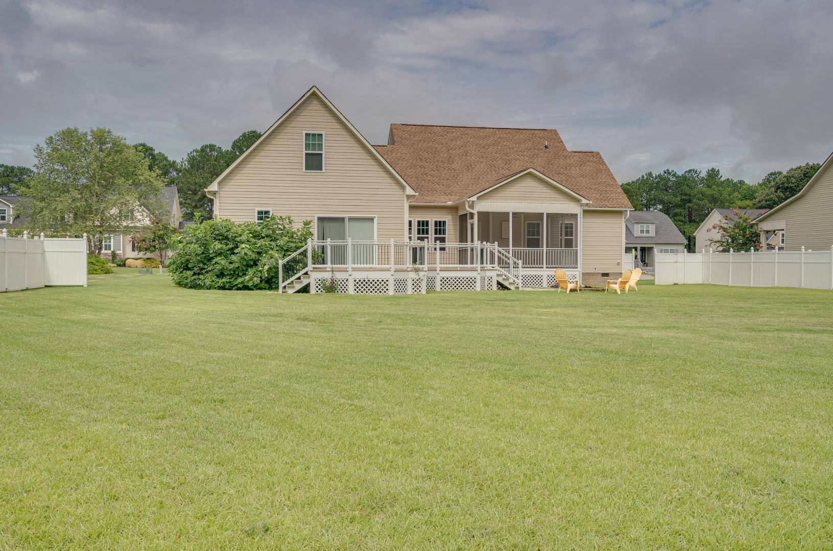 Welcome to 62 Ryland Drive in the Sunset Ridge community! This beautiful single-family home is nestled in the heart of Clayton on .59 of an acre. The expansive 2,653 square feet residence offers 4 bedrooms/3 bathrooms, a versatile flex space, completely fenced-in back yard, and a double car garage. The immaculately maintained home features a first floor primary suite, modern kitchen with granite countertops and stainless steel appliances, a large great room, a formal dining room, and a custom built wrap around back porch. When you step into the front door off the rocking chair front porch, you will be greeted with beautiful hardwood floors and lots of natural light. The large great room in the center of the home has a cozy stone fireplace that is perfect for those cool evenings. Retreat to the screened-in back porch off the great room with your cup of coffee for relaxing and unwinding. You will find tranquility when you walk into the first floor primary suite that overlooks the expansive backyard with the attached bath that features double sinks, tile floors, a soaking tub, separate shower, and large walk-in closet. The laundry room is conveniently located next to the primary bedroom. Two guest bedrooms, a guest bathroom, and a formal dining room complete the first floor. Make your way upstairs to an additional bedroom with attached full bathroom or go across the hall to the flex room that is great for a game room, office space, or den. Enjoy the tranquility of this charming neighborhood while being just minutes away from I-40, Hwy-42, Cleveland Rd, Clayton Community Park, Municipal Park, Clemmons State Forest, and the scenic Clayton River Walk on the Neuse Greenway. Experience the perfect blend of comfort and convenience in this lovely Clayton home. Schedule your tour today and make this house your new home.