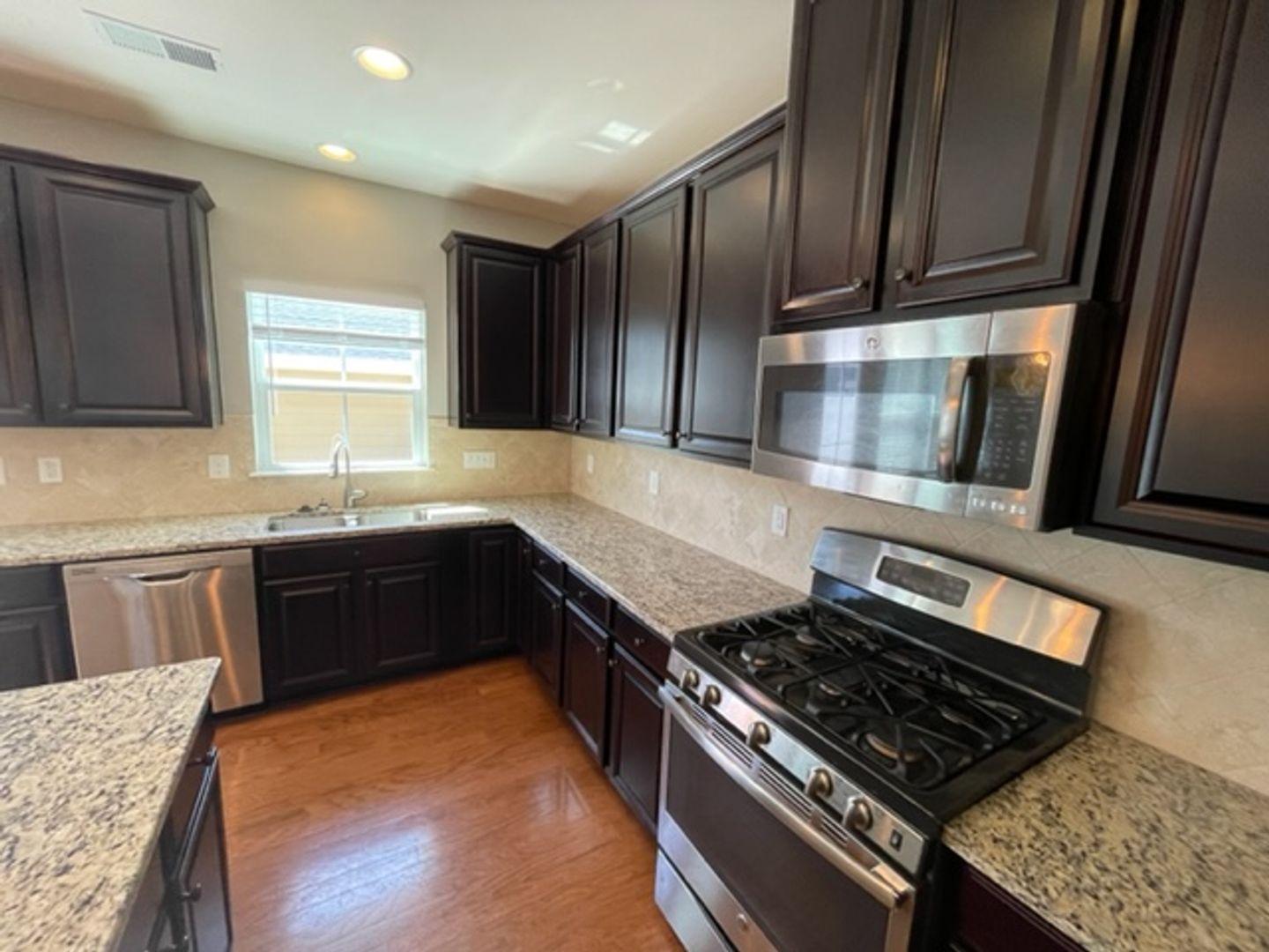 JUST REDUCED! A gorgeous townhome available in Kitts Creek, Morrisville! This is a large 3-bedroom/2.5 bath with a great open floorplan full of builder extras. Home features granite counters, hardwoods, tile, new carpet & recently painted. Upstairs 3 bedrooms including a main suite w/ lux bathroom and WIC. Relaxing back yard with patio and detached 2 car garage. Most landscaping included, fenced in patio/grass is a tenant's responsibility. $300 pet fee per pet if approved. LL believes home contains approx 1746 sq ft but tenant shall verify & not rely upon foregoing representation. Rented as is unless otherwise agreed. Photos taken prior to tenant placement. Required Resident Benefit Package $49.95/month includes liability insurance, credit building, identity theft protection, HVAC air filter delivery, on-demand pest control & much more!