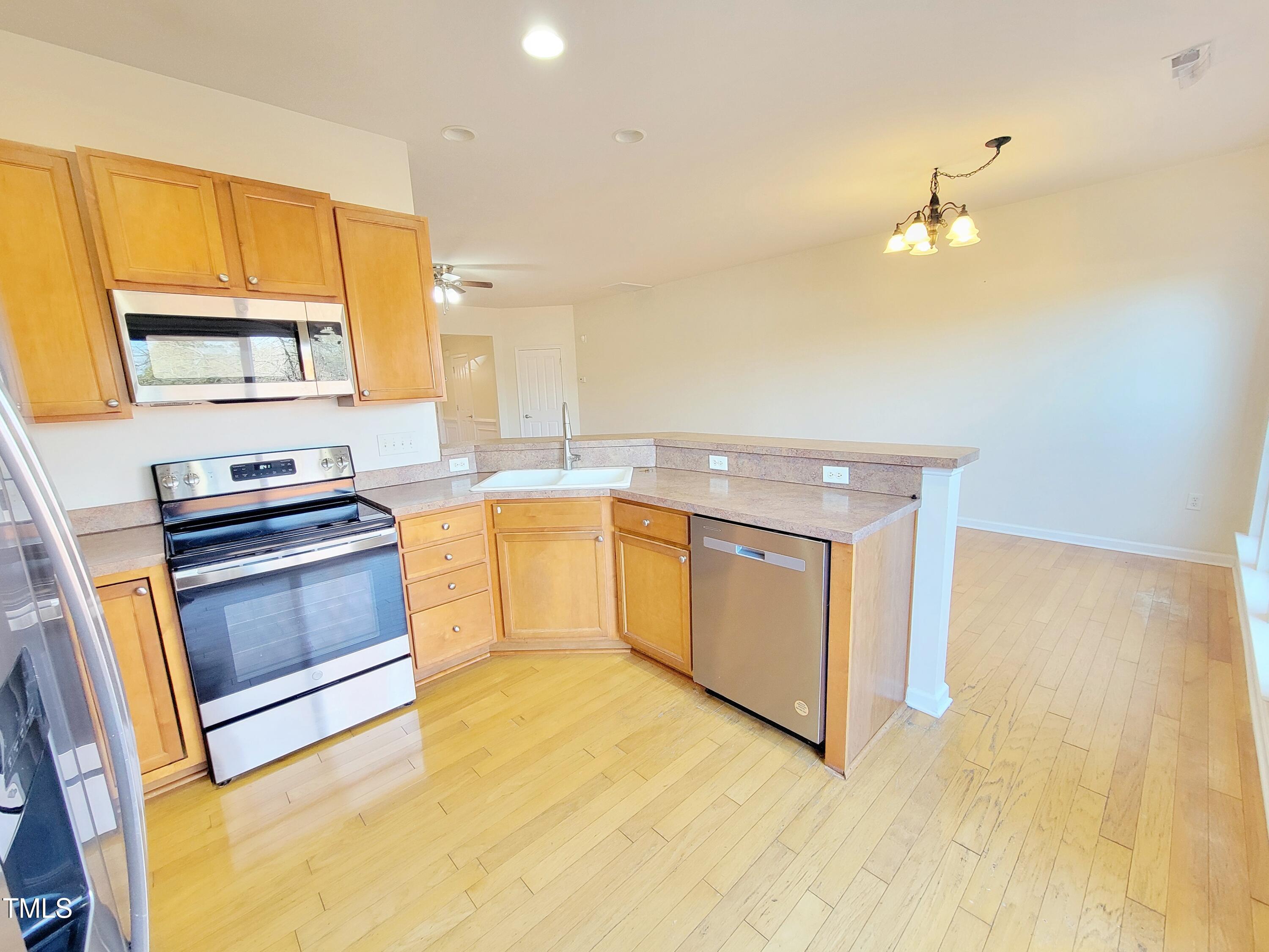 BEAUTIFUL 3 bedroom, 2.5 bathroom townhome in a fantastic location and the desired neighborhood of McCrimmon at the Park! Open floor plan with TONS of natural light and hardwoods throughout the main level! Kitchen boasts SS appliances, island space, and pantry! Amazing primary bedroom with HUGE walk-in closet and en suite with dual vanity! Spacious secondary bedrooms! Washer & dryer included! Fenced in yard and garage! Community pool access included! Call today for full details or to schedule a showing!