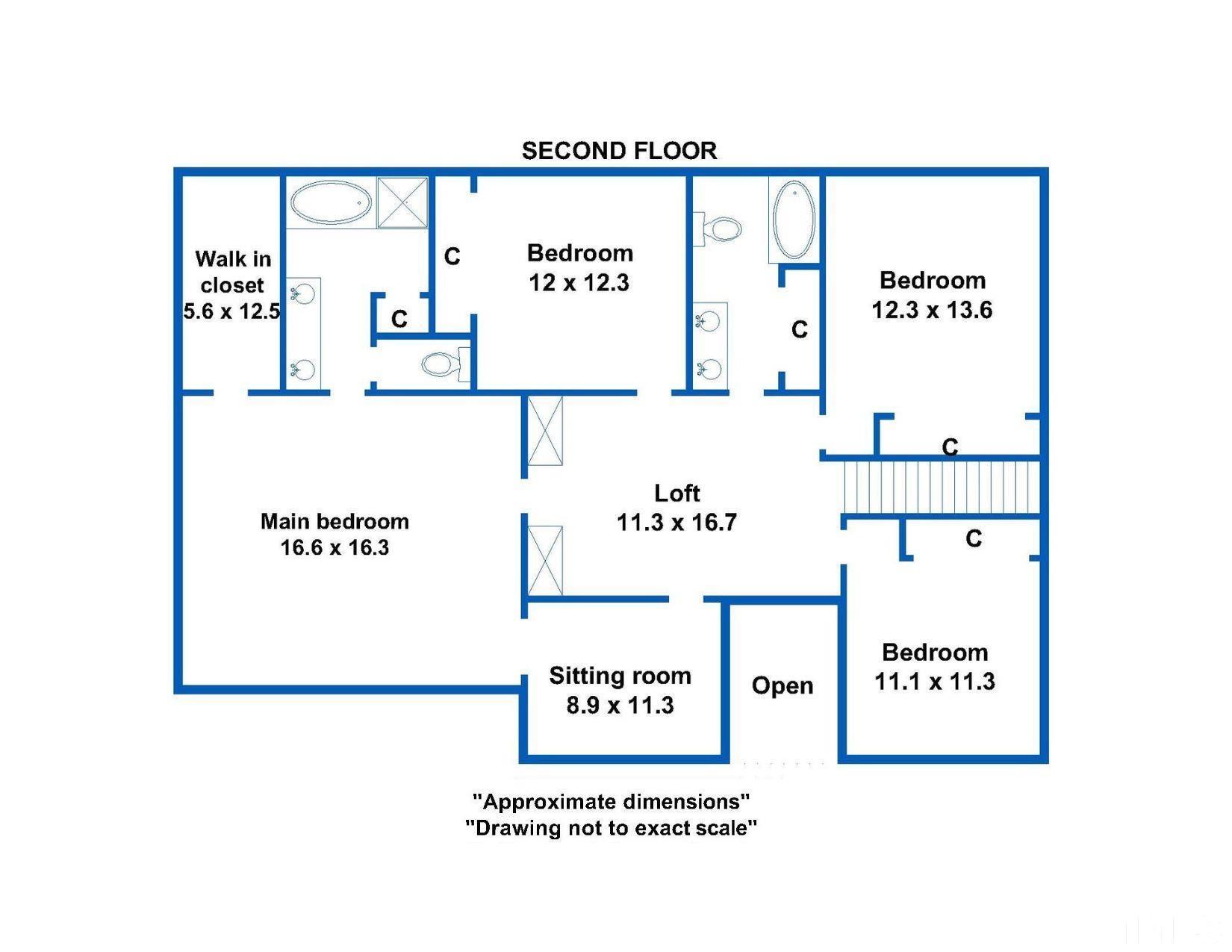 5 bedrooms, 3/0 bathrooms (full/half)